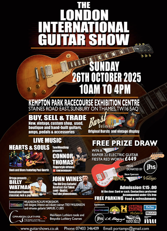 I’m absolutely buzzing with excitement as the London Guitar Show draws closer. It’s always one of the highlights of my year, a weekend packed with inspiring conversations, incredible instruments, and a shared love of all things guitar. One of the things I look forward to most at these events is meeting people face-to-face and hearing their ideas for custom commission builds. There’s nothing quite like working with players to bring their dream guitar to life. Whether it’s a unique wood combination, a special neck profile, or an unconventional design twist, those conversations are where some of my favourite projects begin. I can’t wait to chat, share what I’ve been working on, and hear what’s inspiring other players at the moment. The energy at these shows is always infectious — and being surrounded by so many passionate musicians and builders is the perfect creative fuel. If you’re heading to the show, do come and say hello. I’d love to chat, hear your ideas, and maybe even start planning your next custom build.
